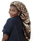 Silk Butter Satin Bonnet For Braids with Tie Band - Leopard