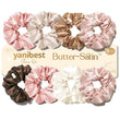 - Soft Butter Satin: The fabric and the gentle elasticity of scrunchies, making them less likely to cause headaches or discomfort when worn for extended periods. These hair scrunchies won't leave an annoying bend in your hair if worn overnight because the soft butter satin
