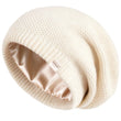 Butter Satin Lined Slouchy Beanie - Beige YANIBEST