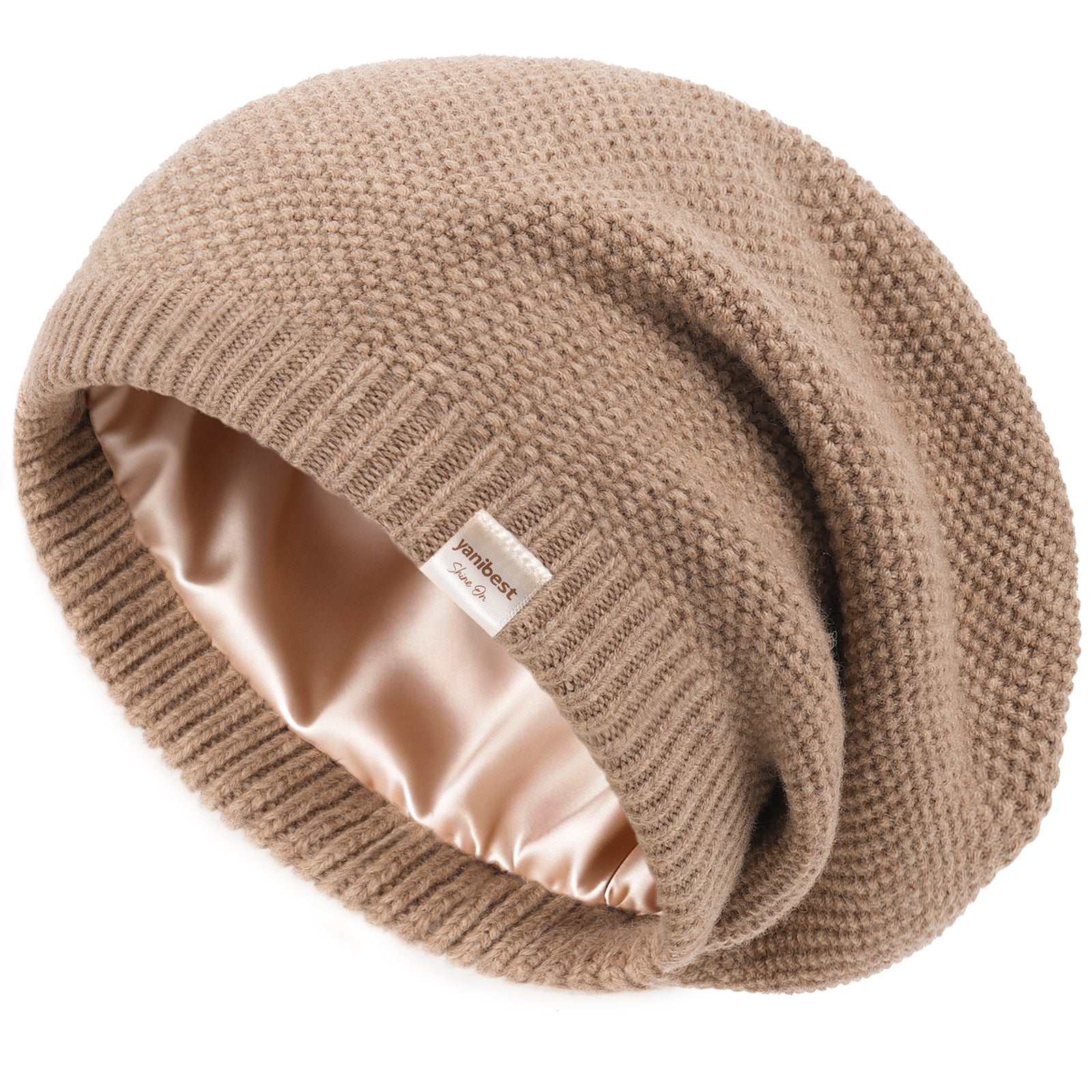 Butter Satin Lined Slouchy Beanie - Camel YANIBEST