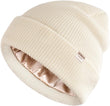Butter Satin Lined Knit Skull Beanie - Cream Beige