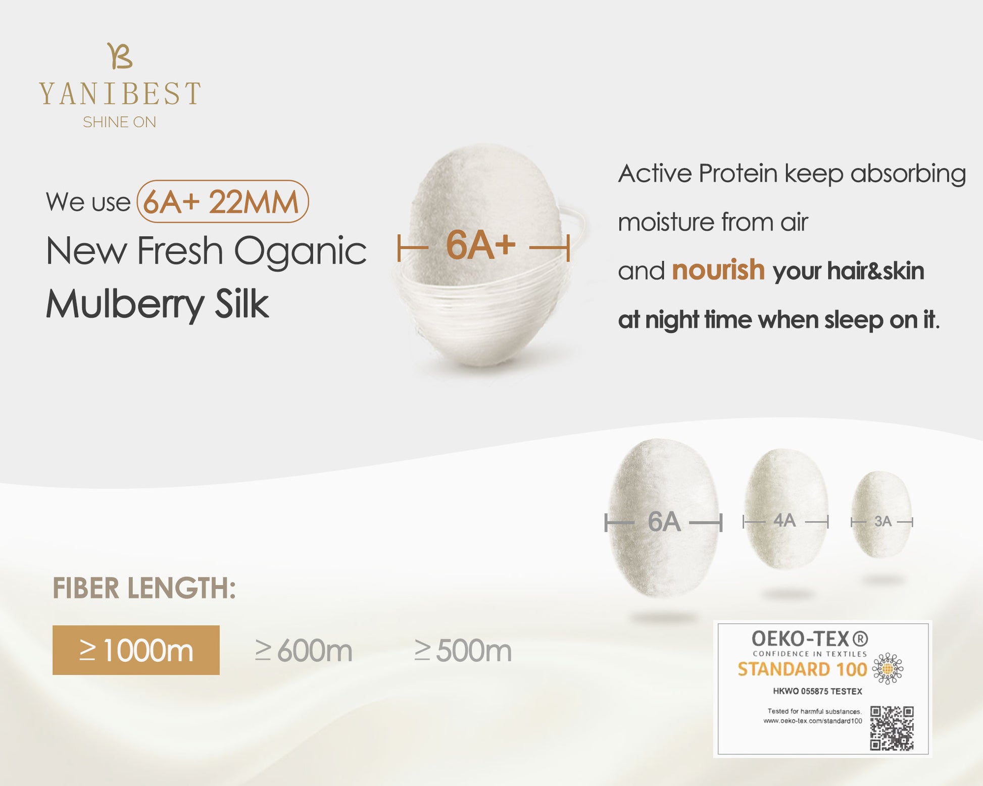 High-grade mulberry silk with a smooth, durable finish.