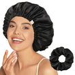 6A Mulberry Silk Bonnet Adjustable Elastic - Black
