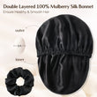 6A Mulberry Silk Bonnet Adjustable Elastic - Black YANIBEST